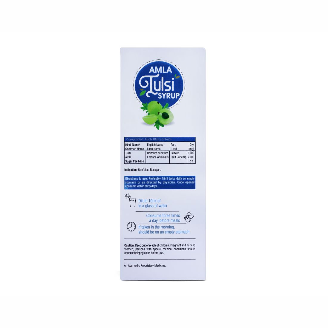 The herbal supplement, Amla tulsi syrup is the ideal health tonic for entire family made with amla and tulsi. It boosts immunity for you to stay fit and healthy. This natural immunity booster protects against cold, coughs & respiratory disorders, throat infections. Rich in fiber, it also improves the digestive function function by speeding up metabolism. Easy to consume, it can be take twice a day and throughout the year. As a natural product made purely from plant extracts, this syrup is a health booster minus any harmful chemicals.